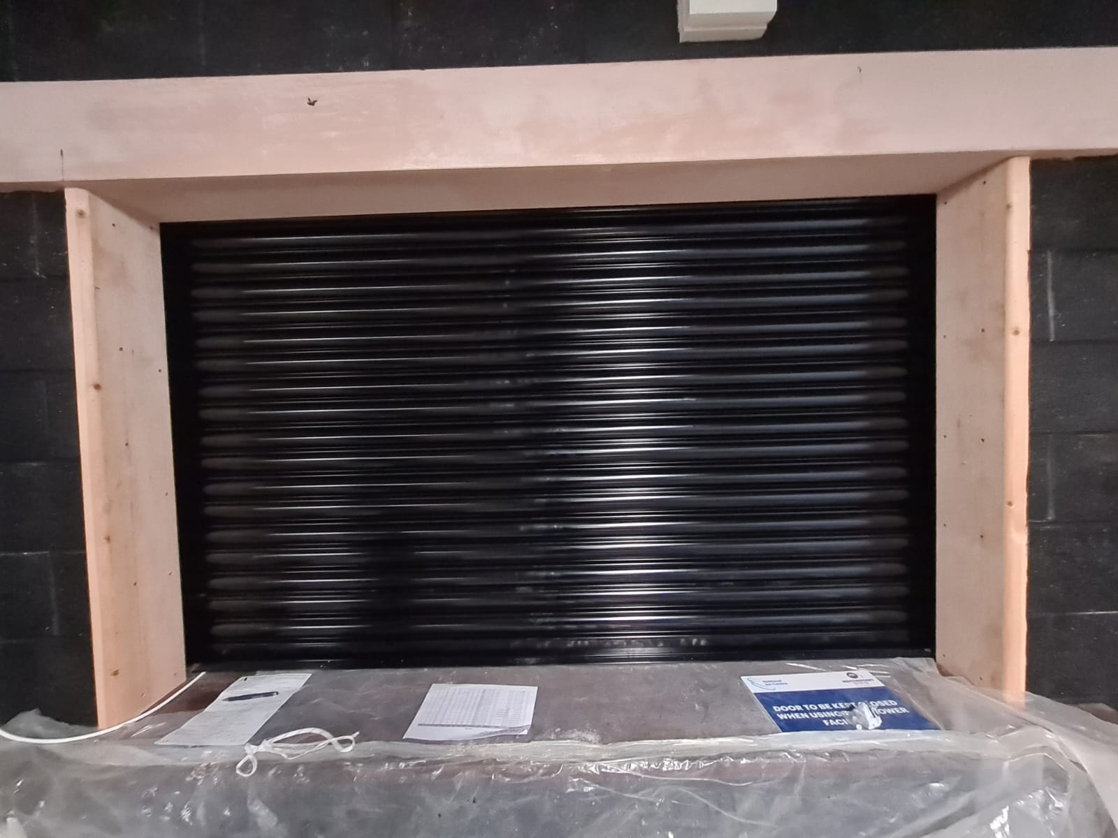 - A smoke trap angle fitted at the opening height between the shutter and the lintel